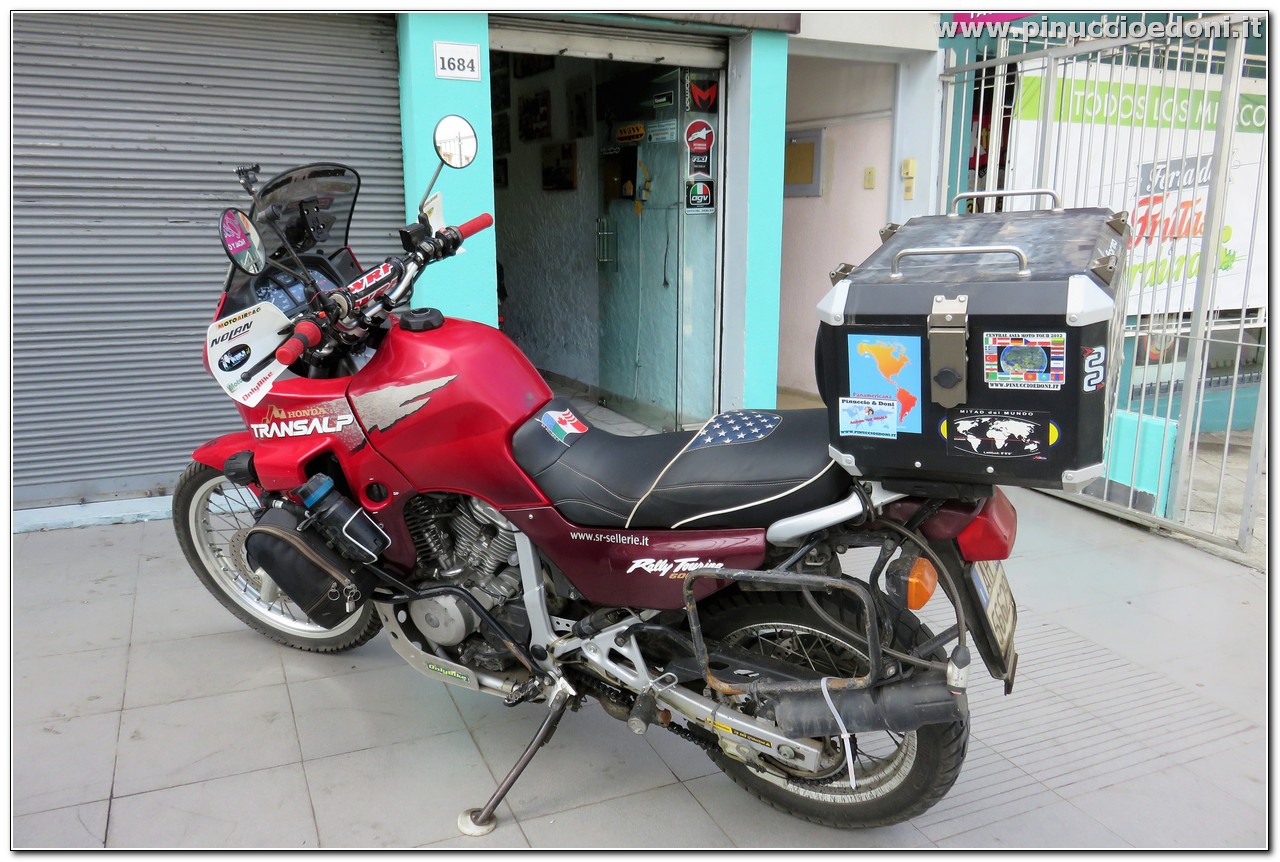 -34.891718$-56.125347$54) 13 agosto 2016 – From PERU’ to URUGUAY Moto Tour Sud America 2016 di Pinuccio & Doni – Montevideo, URUGUAY – Lasciamo a malincuore la casa di campagna di Aguas Corrientes, un vero paradiso lontano dalla civiltà, per trasferirci tutti insieme a Montevideo. Una volta arrivati in città, prima di andare alla casa di Lorena e Luca, io e Doni passiamo dalla officina di Willi per lasciargli in custodia la nostra moto durante i mesi che trascorreremo in Italia. Infatti purtroppo questa terza tappa del viaggio dall’Alaska alla Fine del Mondo si conclude qui. Eravamo partiti un paio di mesi fa da Lima e dopo aver percorso 10mila km tra Perù, Bolivia, Chile, Argentina e Uruguay, eccoci arrivati a Montevideo!!! Scarichiamo la moto e prima di salutarla prendiamo accordi con Willi sui lavori da eseguire sulla nostra infaticabile Transalp per poter riprendere il viaggio a gennaio 2017 con la quarta ed ultima tappa che ci concluderà, dopo aver percorso dall’Alaska 50mila chilometri, a Ushuaia la ciudad del Fin del Mundo!!!